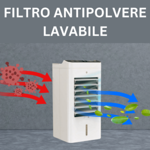 E’ in grado di raffreddare una stanza da 60mq in circa 15 minuti filtrando l’aria da polvere e germi grazie allo speciale filtro Hepa.