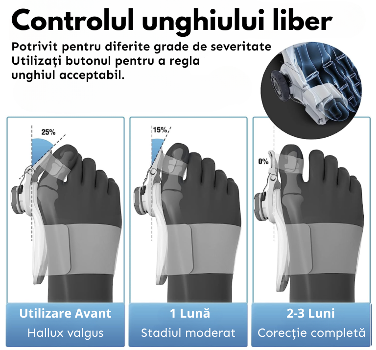 Corecție totală în doar 2-3 luni este posibilă. O călătorie către perfecțiunea picioarelor tale în timp record. Nu aștepta mult pentru a obține picioare frumoase și sănătoase, viitorul picioarelor tale începe acum cu această soluție rapidă și confortabilă.